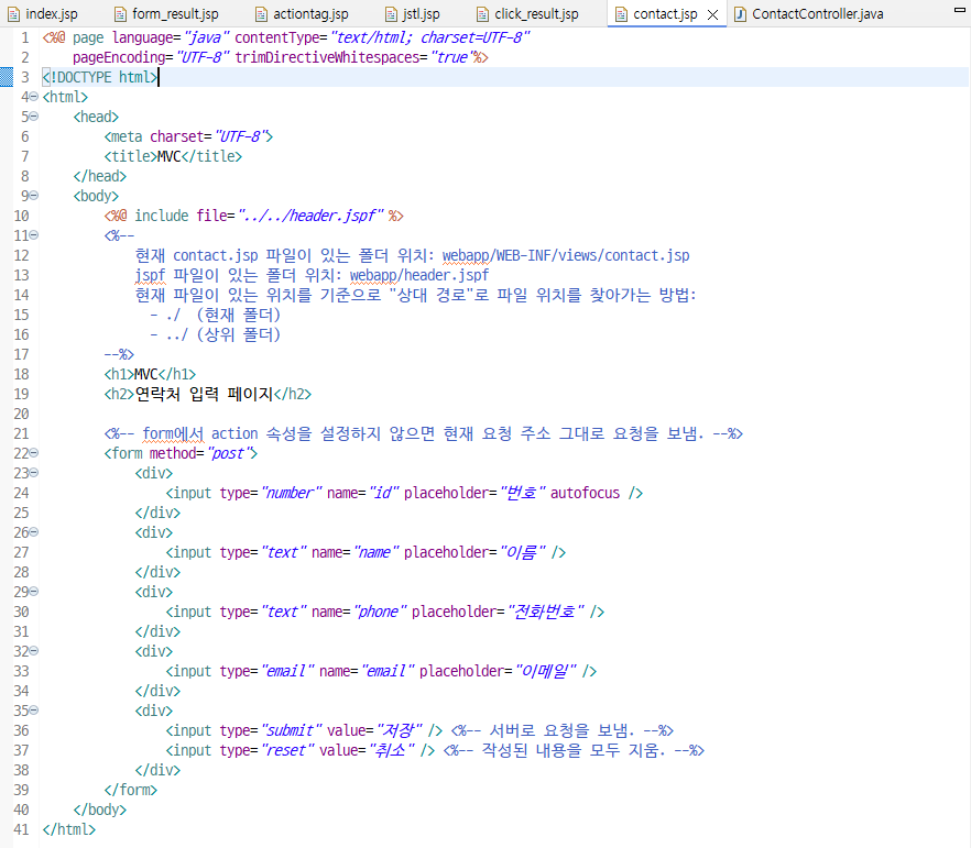이후 jsp로 forward/redirect 시켜서 HTML을 작성하는 식임..